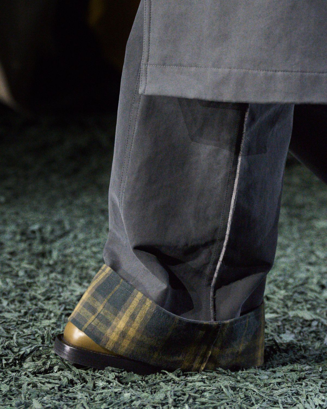 Backstage, one of the journalists asked Daniel Lee what he found the most challenging about the British brand. “The curse and also the beauty of Burberry,” Lee answered. “It appeals to such a broad cross-section of people. But in trying to please everyone you can end up pleasing no one. As a designer, you have to have a point of view. You can’t make a simple trench coat forever.” But, what can you do if your clients still walk into your boutique in search of it?
