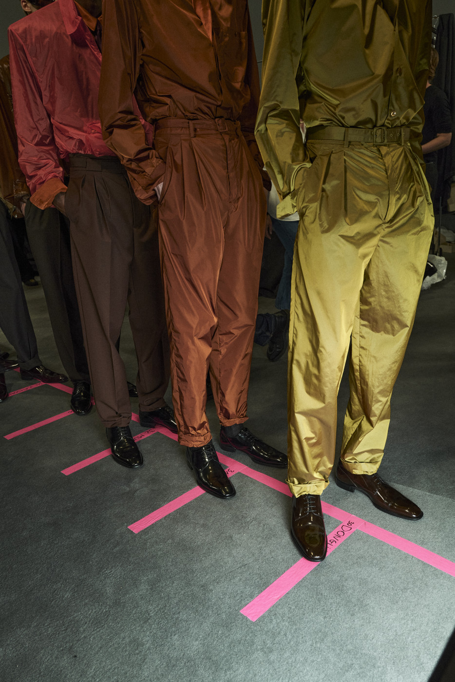 Antony Vaccarello explains that these colors and their combinations came to him while watching an upcoming documentary about artist Larry Stanton, who died of AIDS-related complications in 1984. Vaccarello became fascinated by the entire generation of 1980s New York artists, many of whom died young for the same reason, yet lived intensely passionate and vibrant lives—much like their palettes, filled with the bright hues of that era.