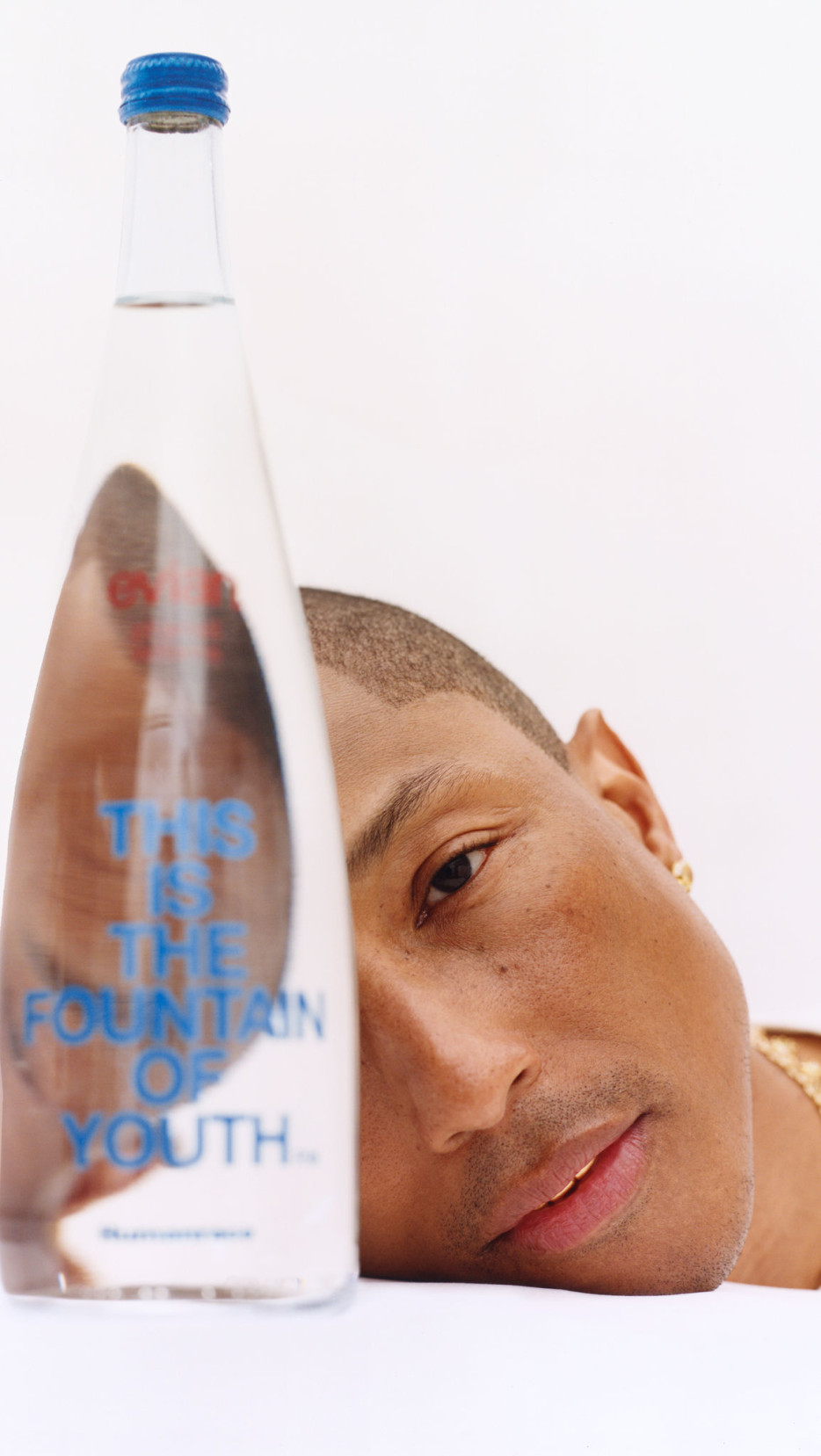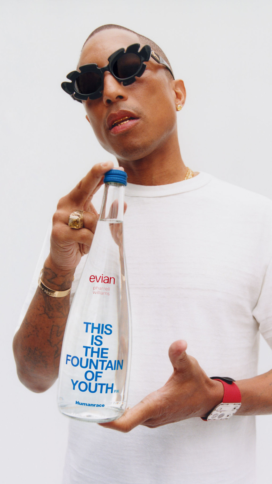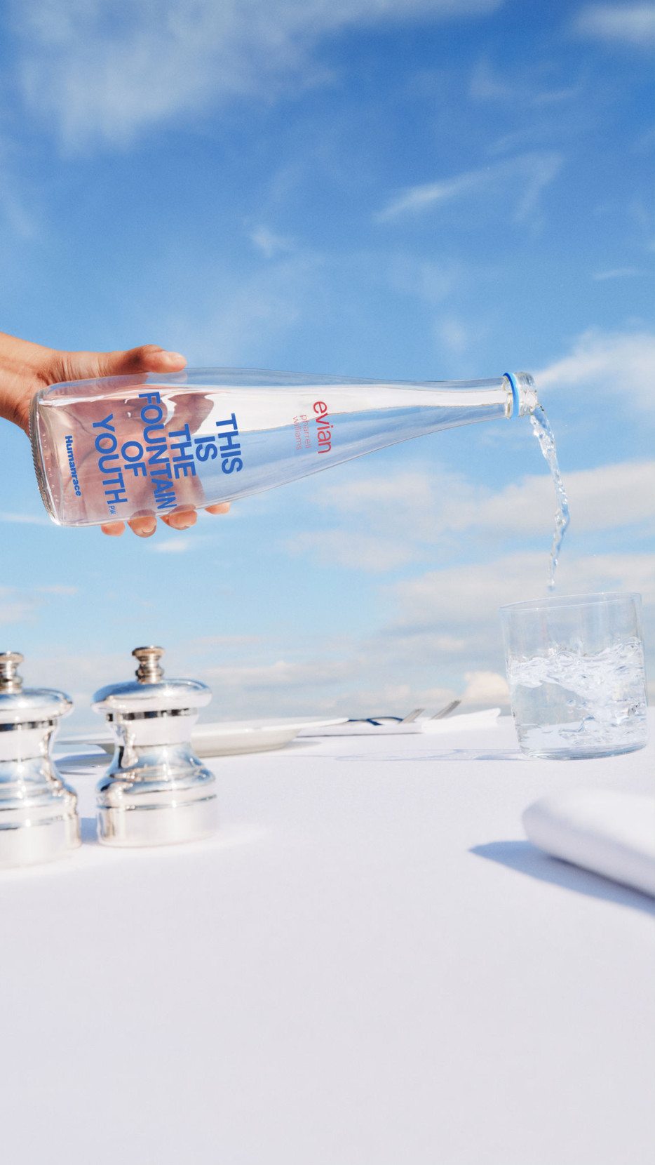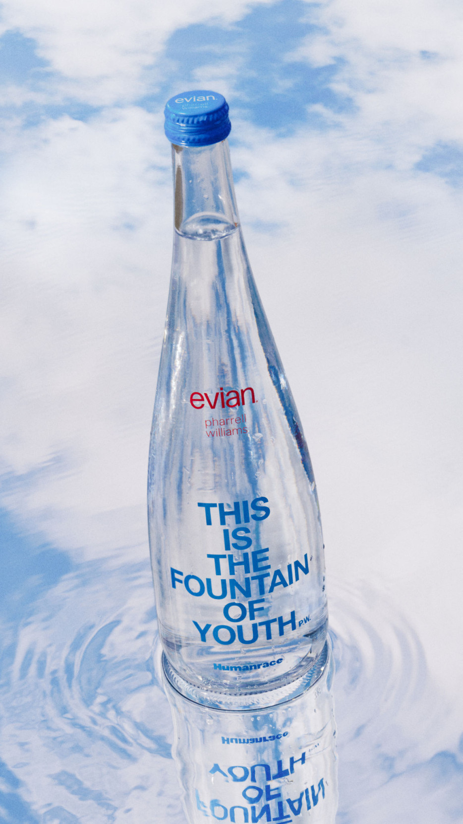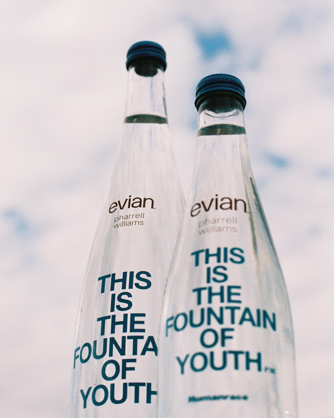 Pharrell Williams is an iconic figure with huge influence across multiple creative industries, a multi-talented musician, singer and songwriter, and now creative director of Louis Vuitton Menswear collections. A fact less known: he has actually worked with Evian in the recent past, his track “JOY” was used as the soundtrack for the ad campaign “Mountain of Youth” this May, so this collaboration comes as no big surprise. As the artistic director for men’s Louis Vuitton, and founder of his own skincare brand Humanrace, he has made a name for himself in the Music and beauty/fashion industry alike, making it a perfect opportunity to now partner with Evian to promote his creative endeavours in other creative fields. Making him the perfect talent to join the rooster of fashion talents who collaborated with iconic French brand: think Issey Miyake, Paul Smith, Elie Saab, Kenzo, Jean Paul Gaultier, Diane Von Furstenberg.