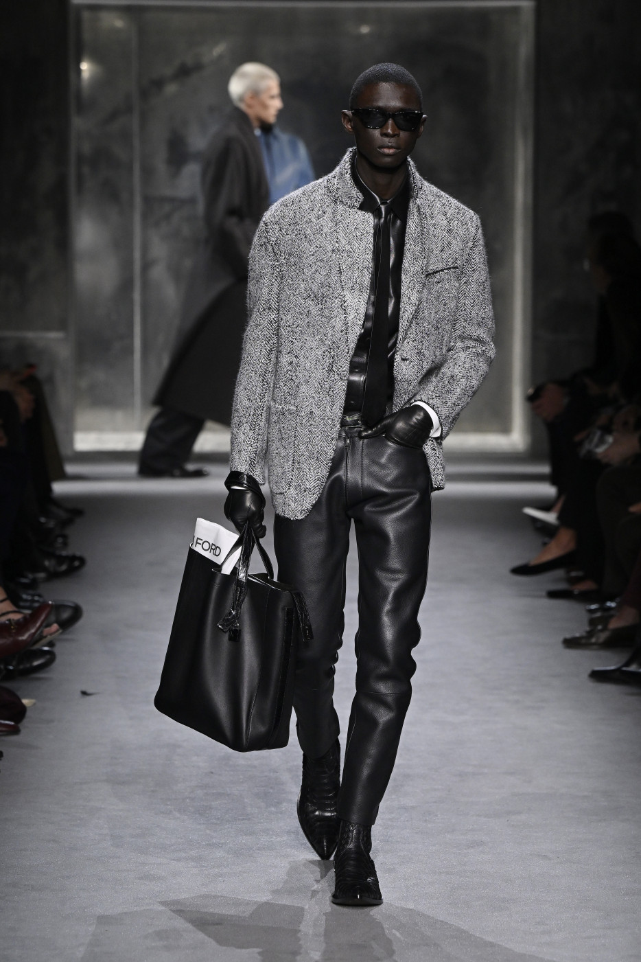 “Private rooms in clubs are mysterious places where things happen that not everyone can access. That unattainability creates a distance that charms, fueling desire. Tom Ford is a world of desire. It lures and seduces,” the designer wrote in his show notes.