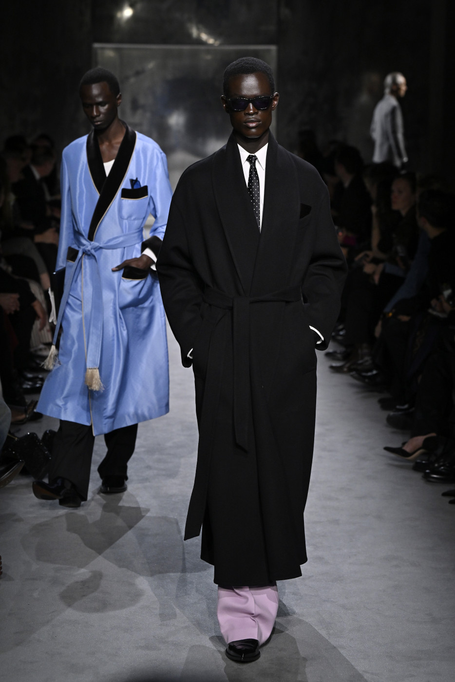 “Sensuality is the feeling of beauty. I welcomed my beauties here: the noble personalities embodying my idea of what makes an individual today. Their androgyny brings alive the vertical directness of what they wear, the ease of pure lines empowered by the full blast of color,” Haider Ackermann wrote in his letter to editors, which served as the show notes.
