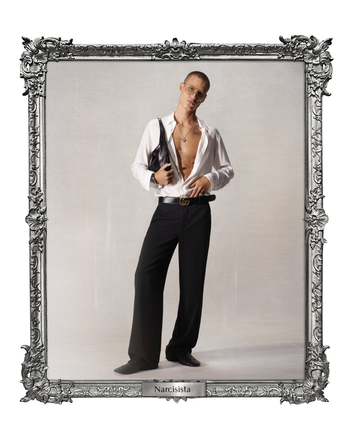 What game is being played here? Let's be honest: what we saw in Gucci’s preview was a blend of house codes and Demna’s personal vision. Antique and vintage frames reminiscent of the Louvre, Victorian silhouettes and floral fabrics — a fiery salute to Alessandro. The “Narcissus” look and men’s trunks with bows — a nod to Tom Ford. The “gallerist” aesthetic — an echo of Frida Giannini’s minimalism. And the rest? Demna’s legacy trailing from Balenciaga.