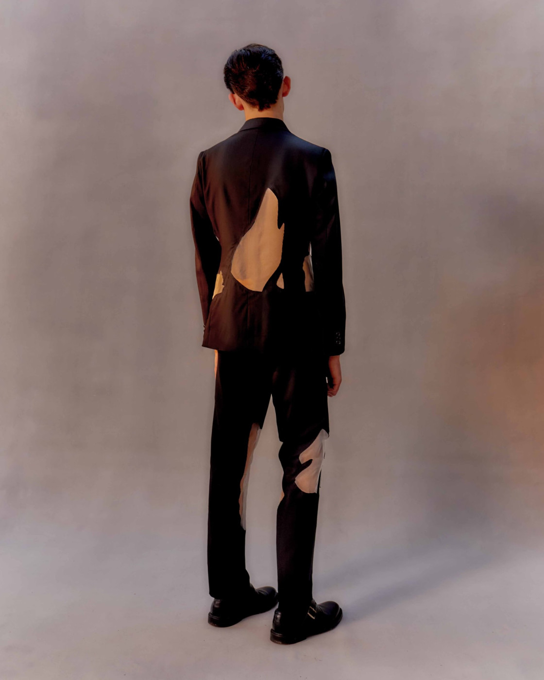 Meanwhile, London-based designer Steve O Smith took home the Karl Lagerfeld Prize (€200,000 and a personalized one-year mentorship). His work explores the intersection of drawing and garment construction. During his Central Saint Martins years, he developed a distinctive process using fabric appliqué and precise pattern cutting to translate sketches into living, wearable lines. His clothes capture movement as if hand-drawn strokes had been set in motion. True to his sustainable ethos, Smith produces only made-to-measure pieces for a select clientele.