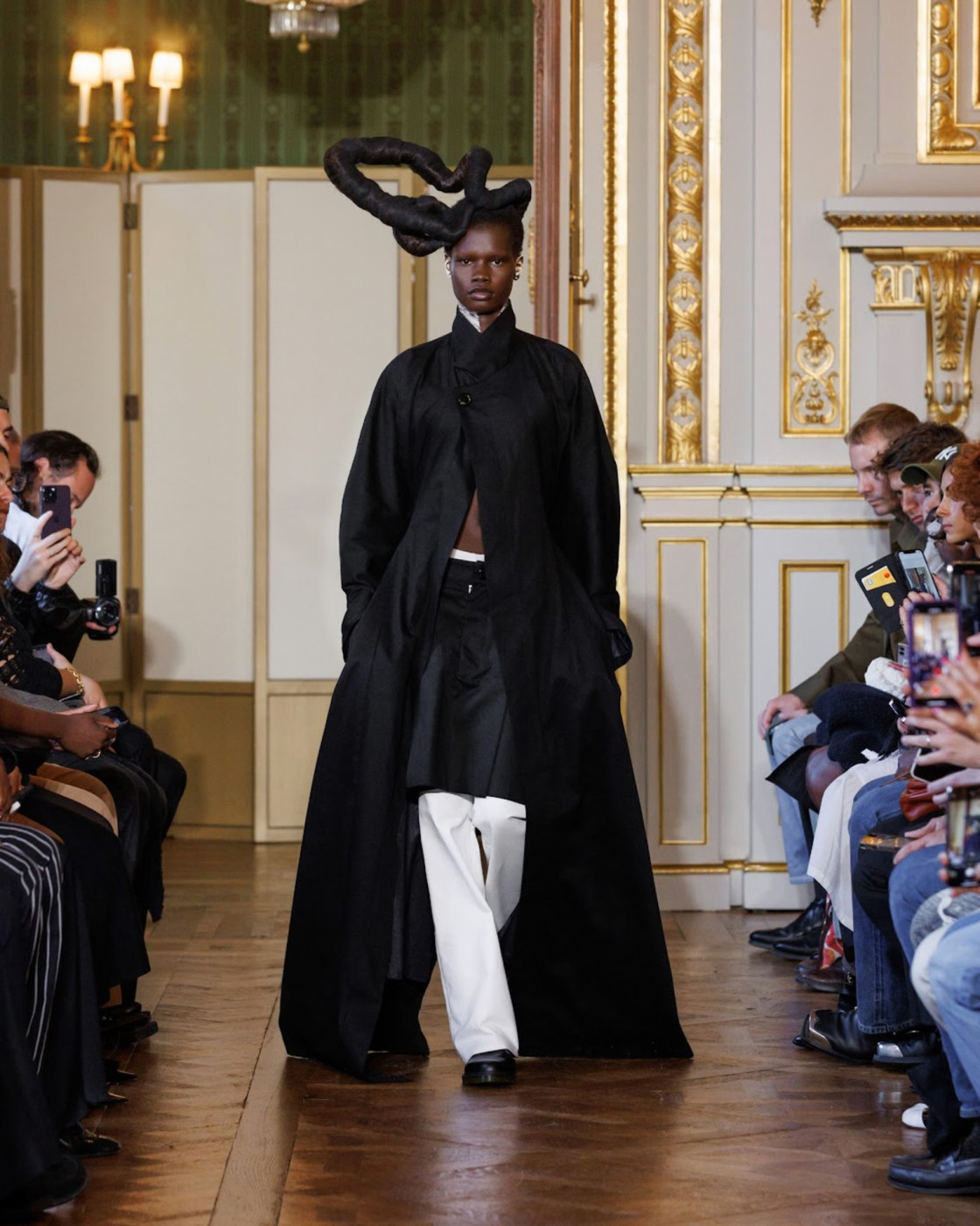 Finally, Torishéju Dumi, also London-based, won this year’s Savoir-Faire Prize (€200,000 and a mentorship program), presented to her by French actress Camille Cottin. A Central Saint Martins graduate, she fuses her mother’s passion for 19th-century design and art with her Nigerian-Brazilian Catholic upbringing, weaving folklore and heritage into her creations. Her work offers a dialogue between womenswear and menswear, crafted from deadstock fabrics and transformed into forward-looking, narrative-driven pieces. Fun fact: Torishéju once worked at Céline under Phoebe Philo, who was on this year’s jury. And her victory, following the recent appointment of Rachel Scott as creative director of Proenza Schouler, marks a significant moment for female designers in a male-dominated industry.