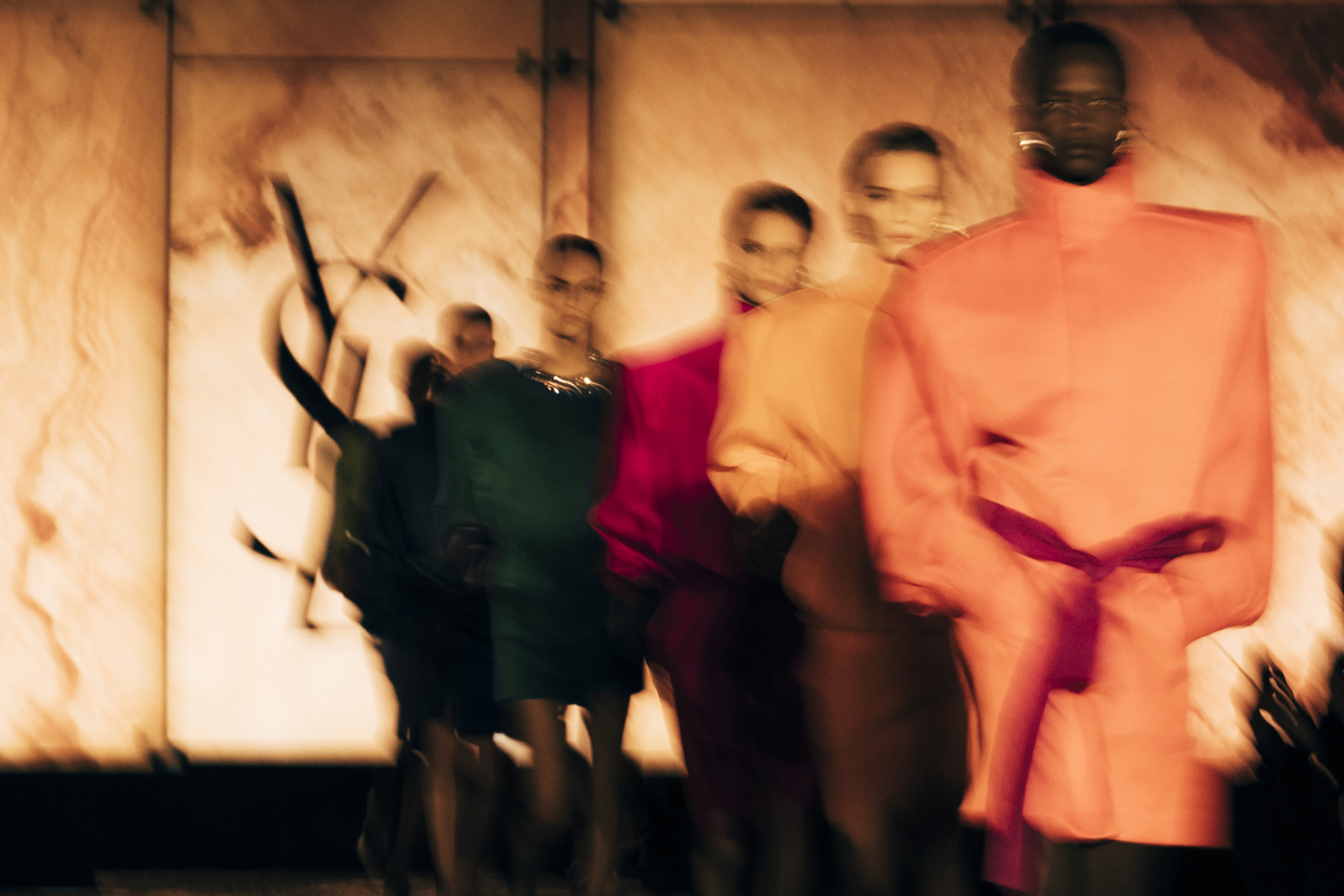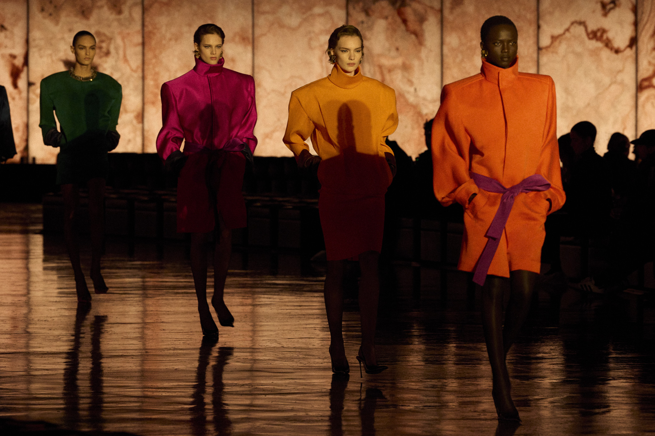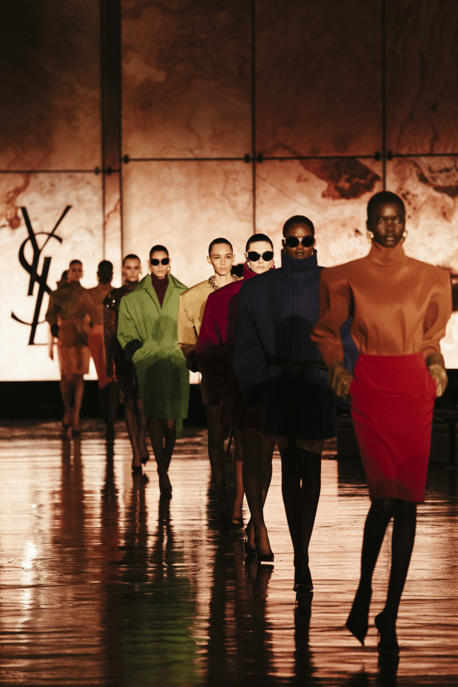 Anthony Vaccarello of Saint Laurent closed the final night of Paris Fashion Week with a show that emphasized precise tailoring and innovative textures.
