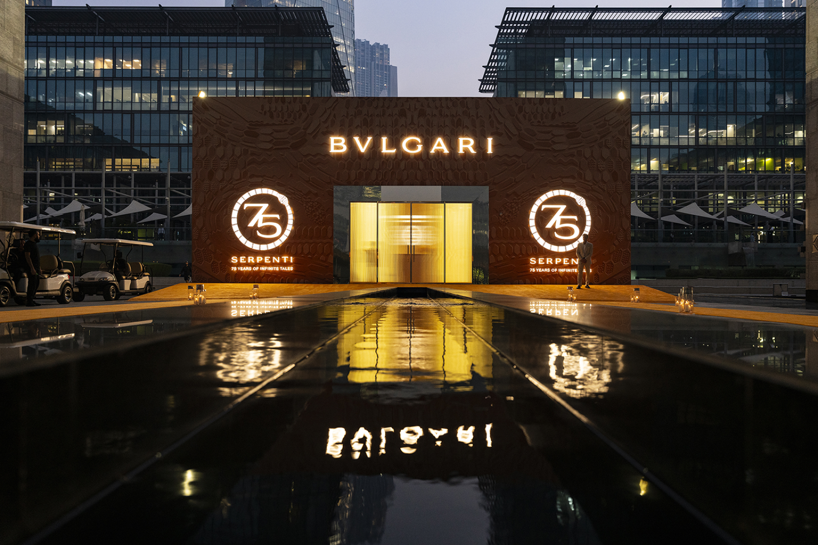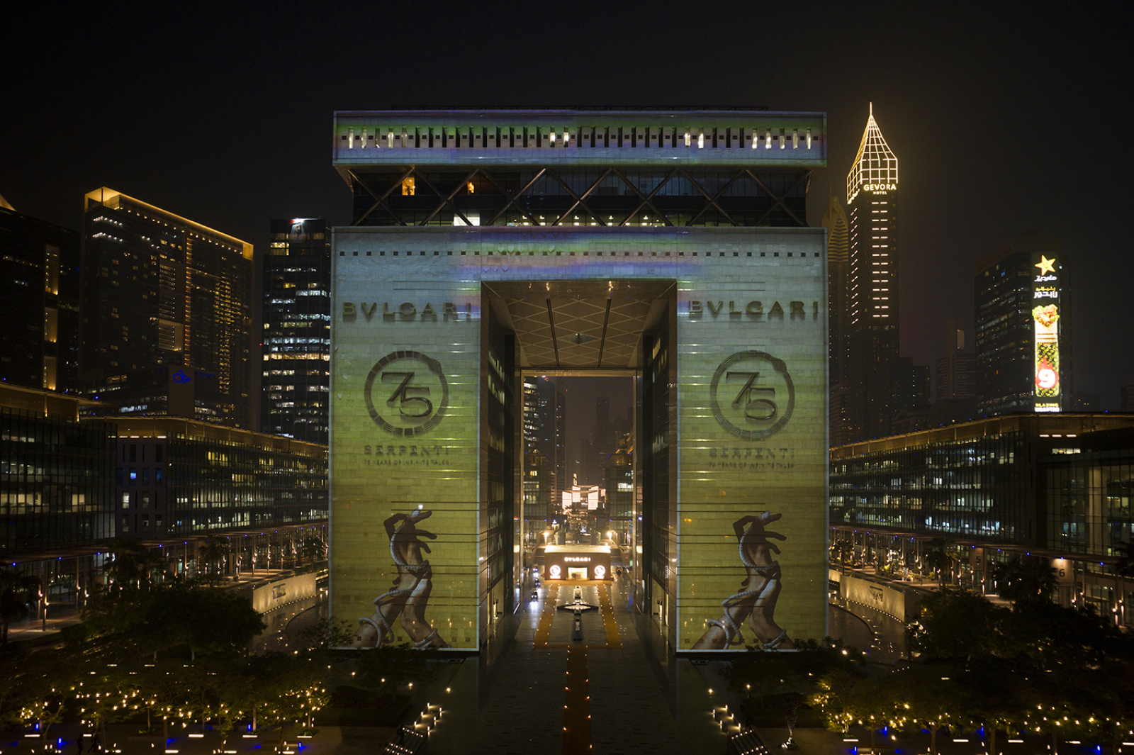 In a dazzling event at The DIFC in Dubai, Bulgari marked the “Serpenti Factory” grand opening and the captivating “75 Years of Infinite Tales” exhibition. On this special occasion, the iconic Serpenti emblem took center stage, casting a mesmerizing display of projection mapping on the Gate Building painting the Dubai skyline with its radiant allure. It was a momentous occasion that merged the worlds of luxury and artistry.