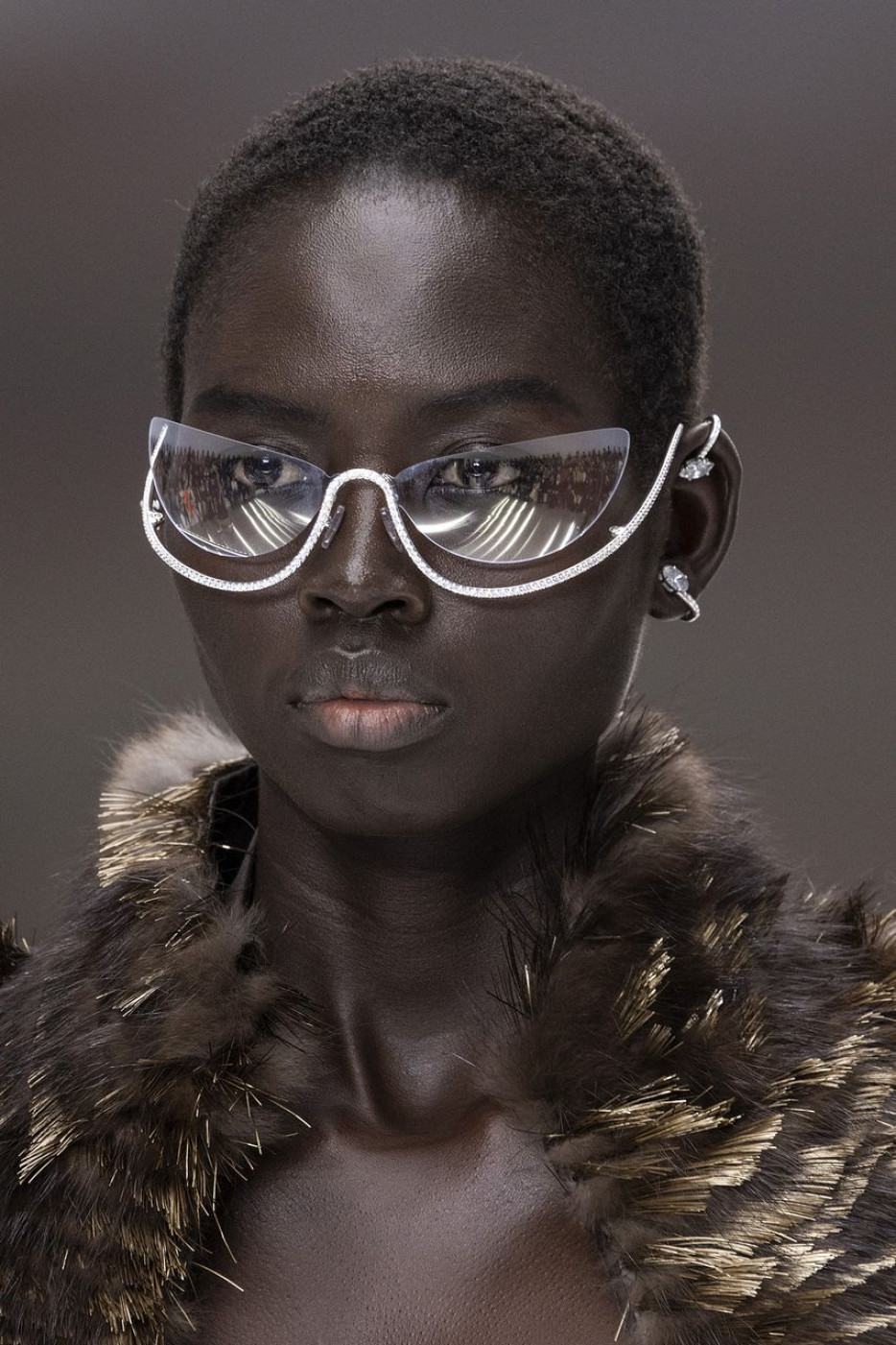 It is a new tradition, Fendi is showing the newest of Haute Joaillerie creations right during the Haute Couture show in Paris. This time, Delphine Delettrez-Fendi, artistic director of jewellery, focused on several cuff earrings in white gold with pear-cut diamonds, rings for two fingers, as well as precious miniature bags “Fendi Gems Baguette”, where the signature FF buckle is embellished with a diamond pavé. But the true head-turner of the collection was undoubtedly the high jewellery sunglasses “Singular Vision” in white gold with sparkling diamond pavé. Conceived with the support of LVMH's eyewear expert Thélios, these futuristic models, as if from the not-too-distant future, will be available in Fendi's private salons, where clients will be offered a bespoke made-to-order eyewear fitting experience, powered by Augmented Reality Technology. Thanks to the 3D face-scan technology, developed by Thélios, one can take precise measurements of the face to create unique made-to-measure frames. The future indeed looks bright.