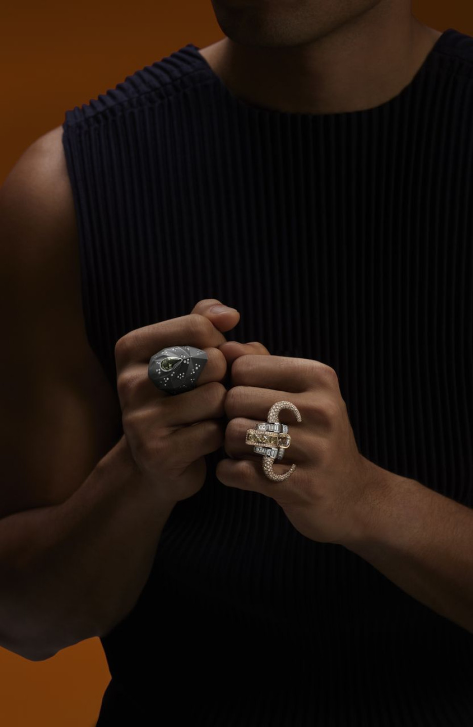 This winter, the British house of De Beers is launching a new High Jewellery collection dedicated to the “Forces of Nature”, namely the totem animals of Africa, where the company's main diamond mines are based. The first chapter of the collection is built around eight transformable rings with unique central diamonds. For example, the “Lion Jacket” ring sparkles with a 5.09-carat triangular warm-light diamond that can be worn with or without sculptural mane crafted in yellow gold beads and diamond pavé, that move like a fringe between the fingertips. Another standout, the “Giraffe Crown” ring is striking with its 5.78-carat round hero diamond, embraced by two V-shaped bands with chocolate diamonds, mimicking the form of giraffe spots. It’s up to you to pile them up together, spread across different fingers or wear them separately.