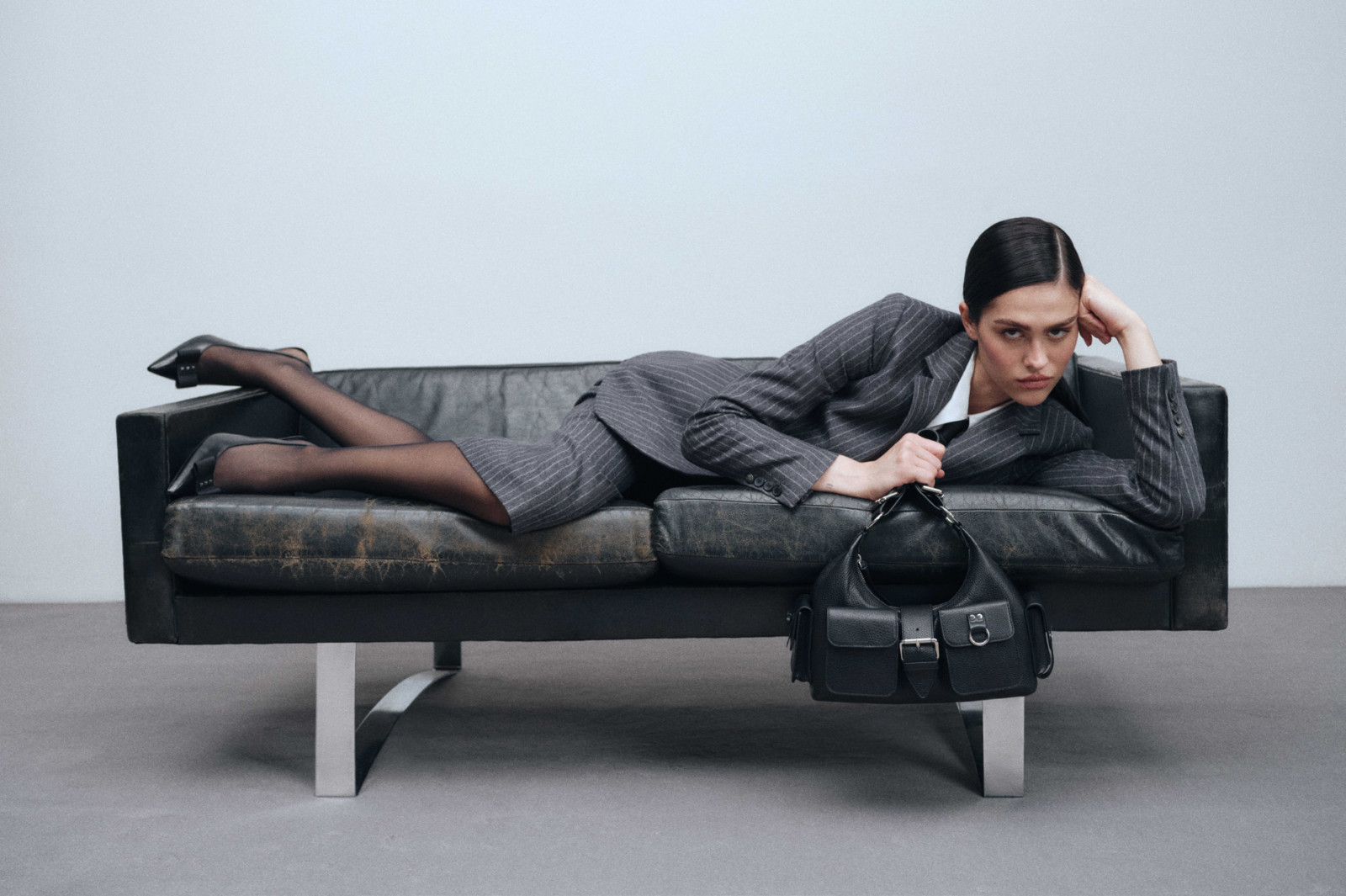 In the campaign shot in Paris, Amelia is seen wearing the bag both to the office and to her off-schedule meetings, dressed impeccably in tailored skirt ensembles or indie jeans, styled with a faux fur coat.