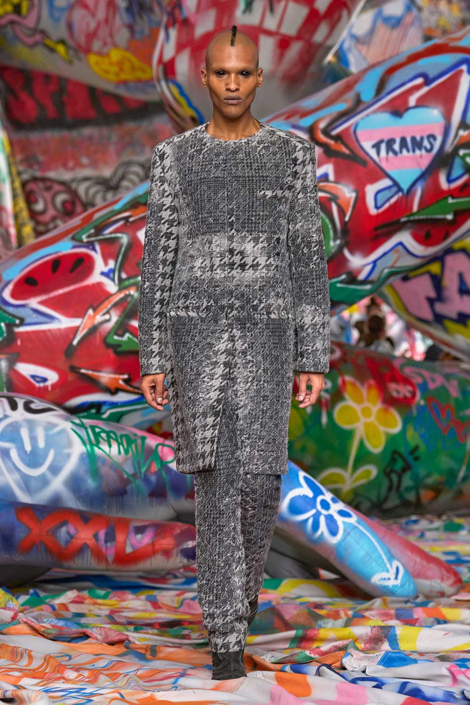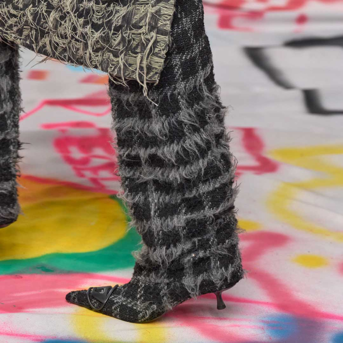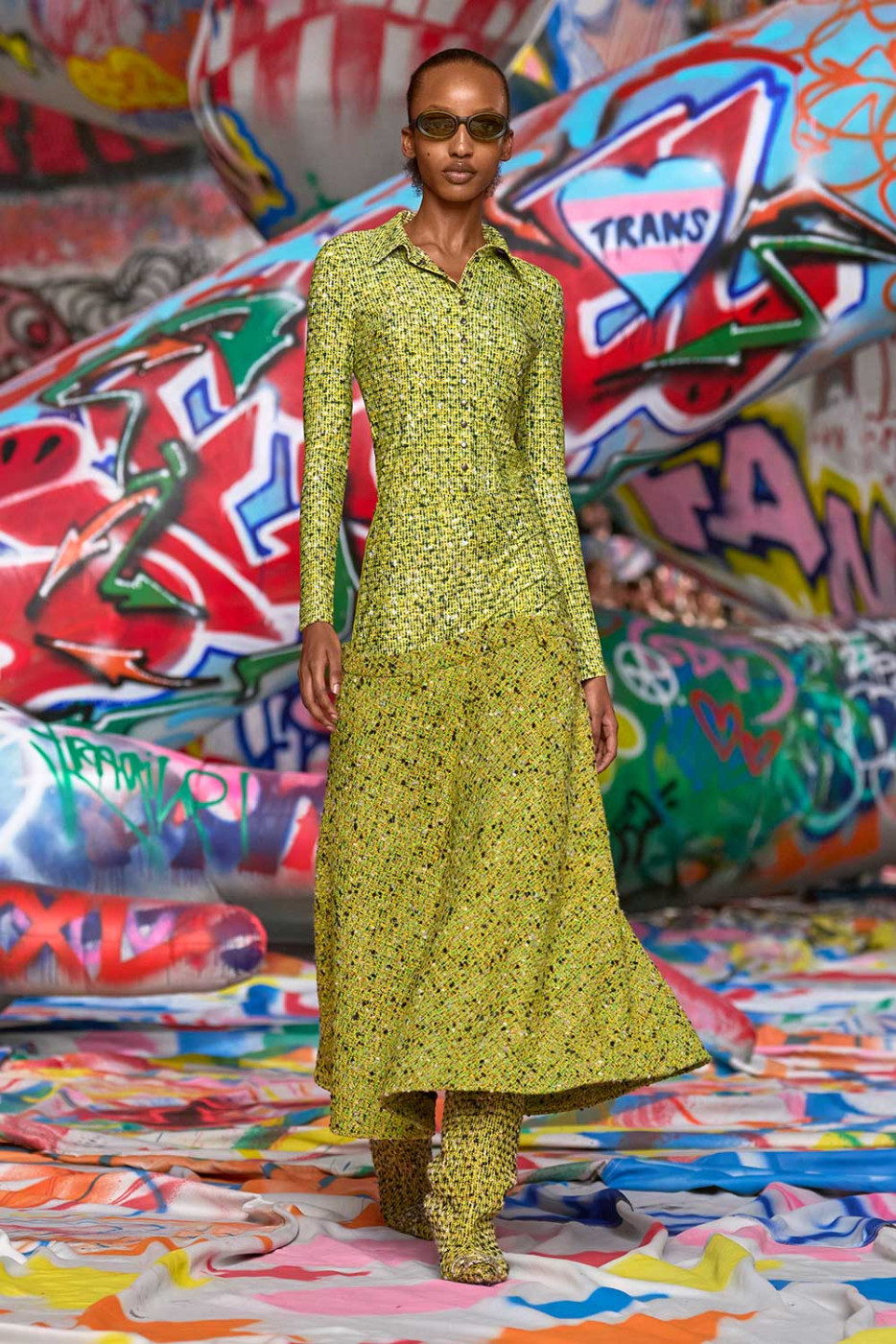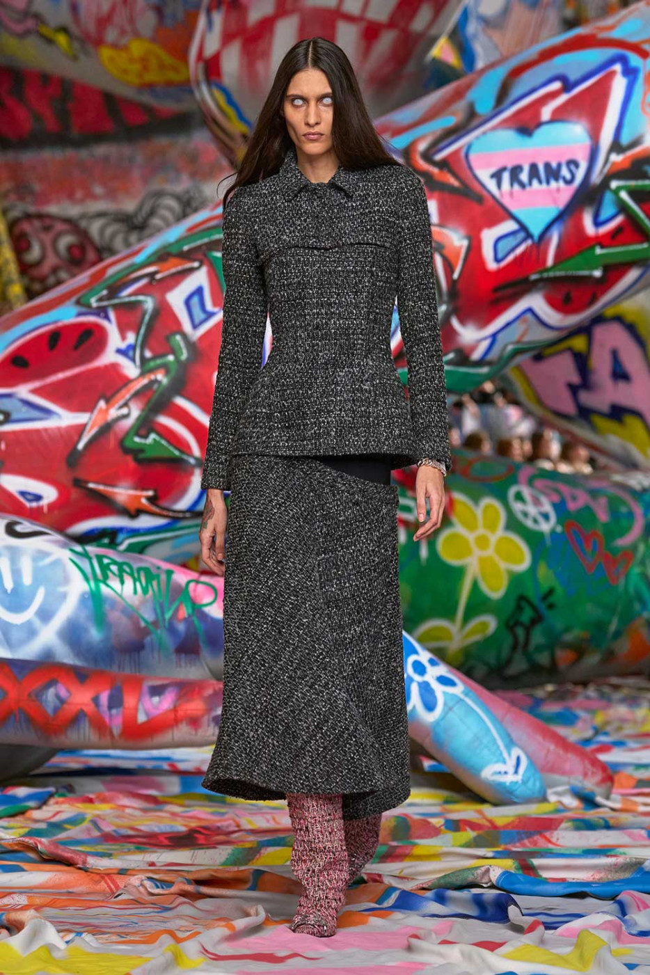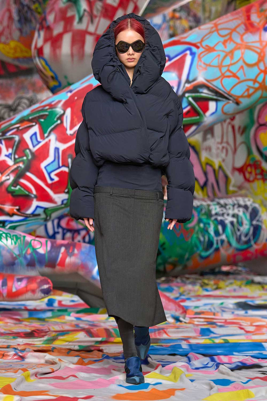 The venue for Diesel’s show felt like an immersive, mesmerizing universe. In the past, the brand has stacked 200,000 boxes of condoms and spread 14,800 kg of denim scraps across the space.This season is held in the biggest ever known graffiti installation, with over three kilometers of graffiti fabric, made by a global street art collective of around 7.000 of amateur and expert graffiti artists.