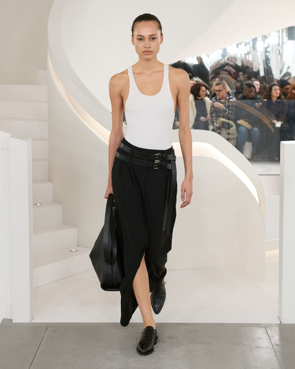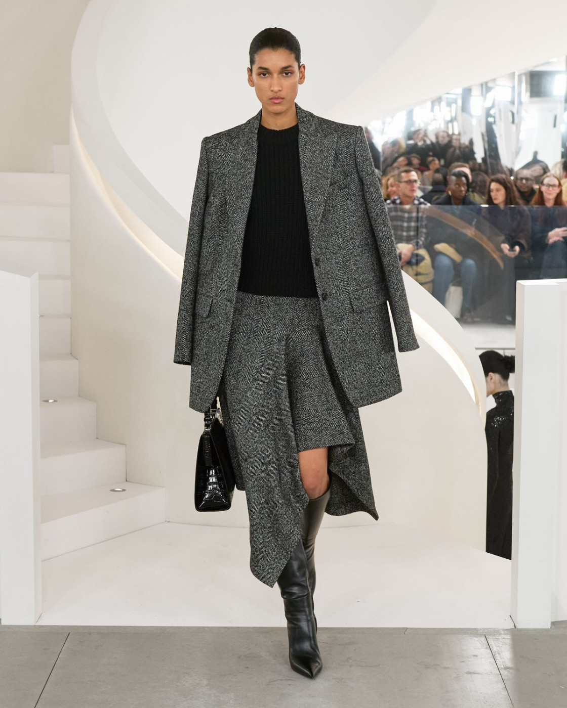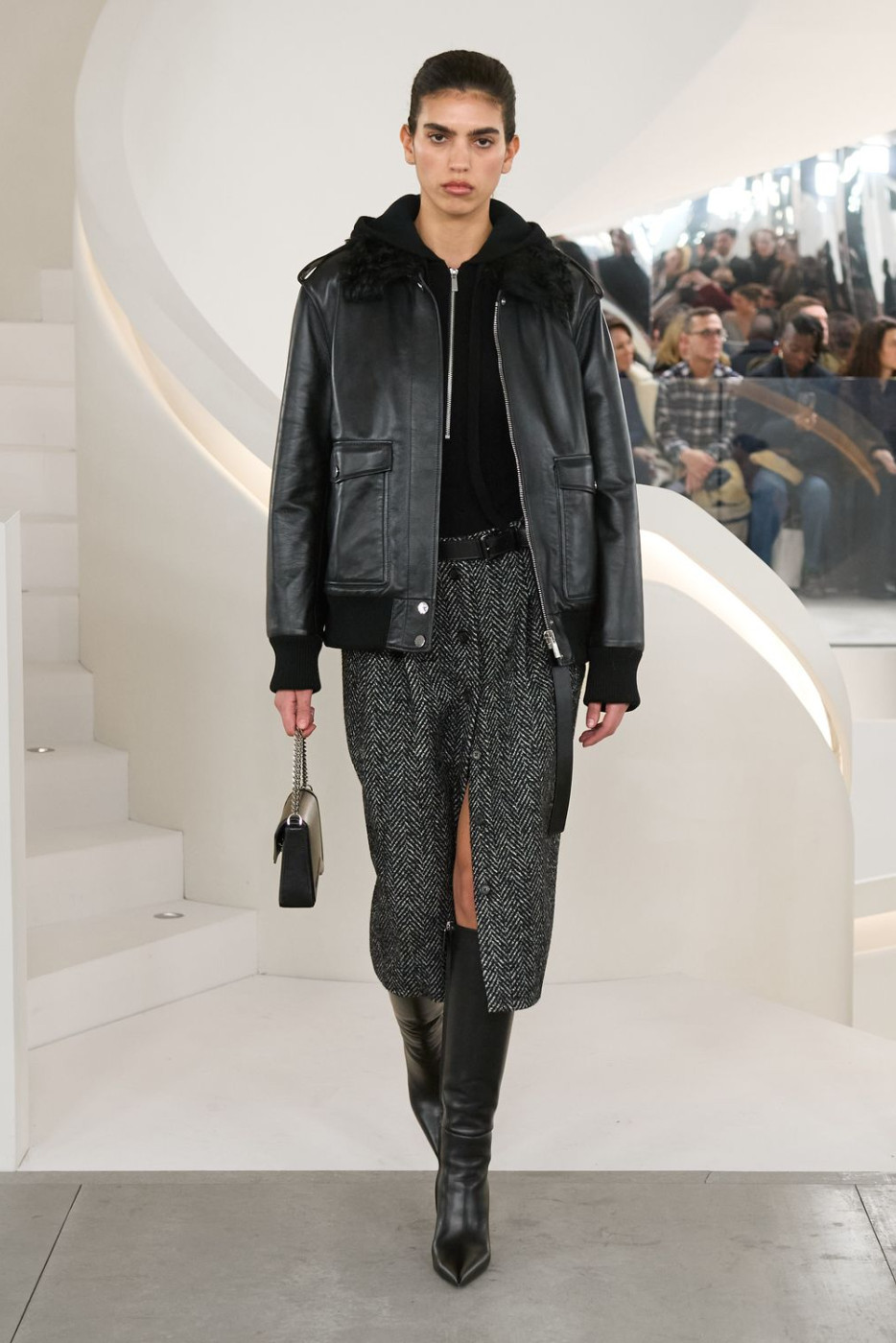 On the last day of New York fashion week, for his autumn-winter collection Michael Kors took the former Barneys New York store space in Chelsea, turning the iconic spiral staircases into his runway.